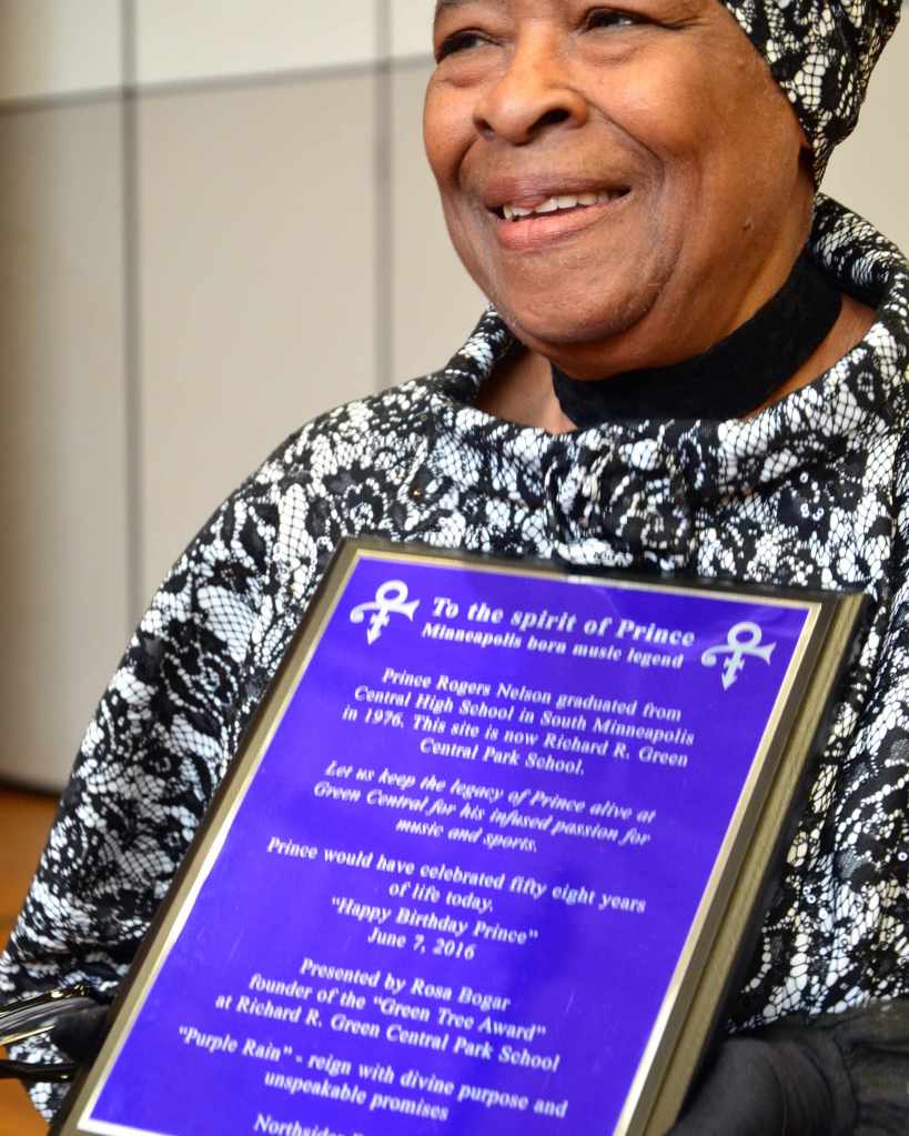 Il 7 giugno 2016, per il 58esimo compleanno di Prince, Rosa Bogar ha presentato una targa all’interno della scuola di South Side che lui aveva frequentato. Rosa, scomparsa nel settembre 2018, aveva insegnato nella stessa scuola di Prince, allora però si chiamava Central High School.