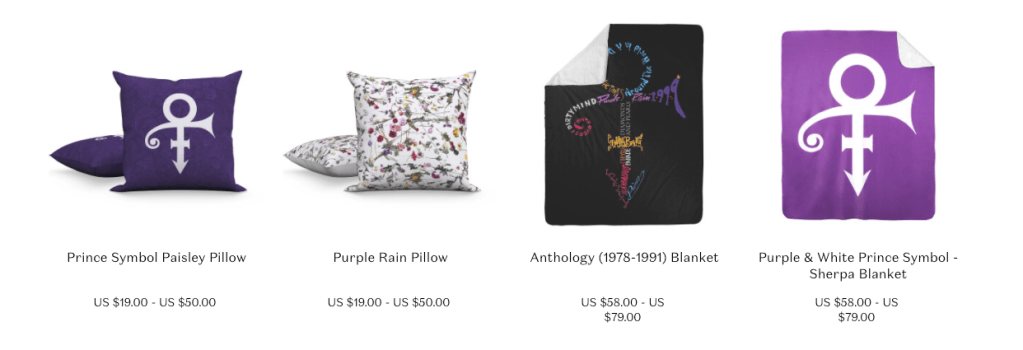 L’ultima proposta Xtra-musicale che ha scaldato (si fa per dire) gli animi dei fan di Prince è il set di lenzuola, cuscini e federe firmato da Prince Estate. Un mix di loghi già visti e di oggetti che (a parte qualche malato di mente 😎 come me) pochi potrebbero acquistare, facendosi oltretutto sommergere dai costi della dogana.