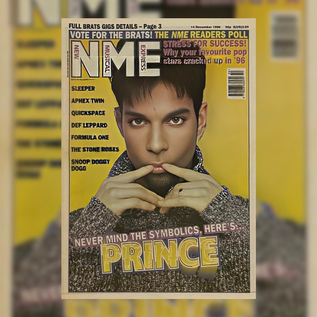 “Senza badare alla simbologia, ecco Prince”sulla copertina di dicembre 1996 di NME.