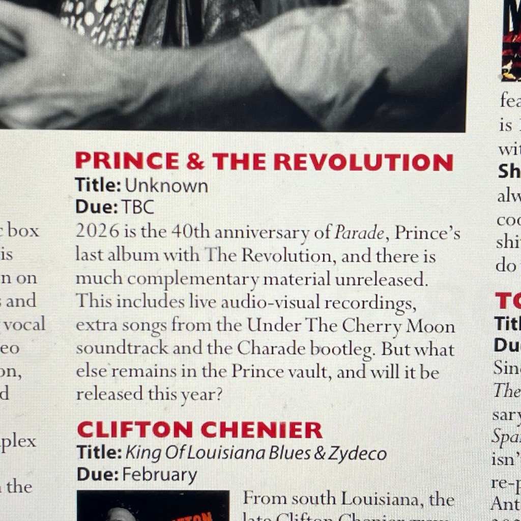 Mojo poi ricorda a tutti che nel 2026 saranno i 40 anni dall’ultimo album dei Revolution con Prince, cioè Parade. E si domanda se ciò che rimane nel vault di Prince sarà pubblicato quest’anno.